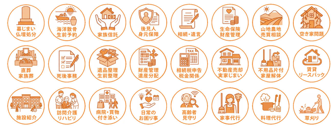 終活や相続に関わることを全てワンストップで提供しています。